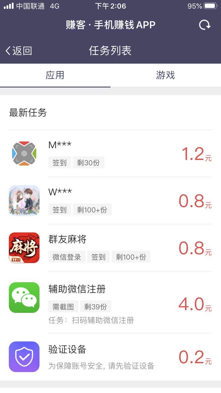 用户可以通过免费试玩应用软件来赚取现金奖励。这里的苹果iOS应用单价2.1元起,每天都会更新大量的任务。只要你试玩应用就能拿到钱,真的是很轻松的赚钱方式。