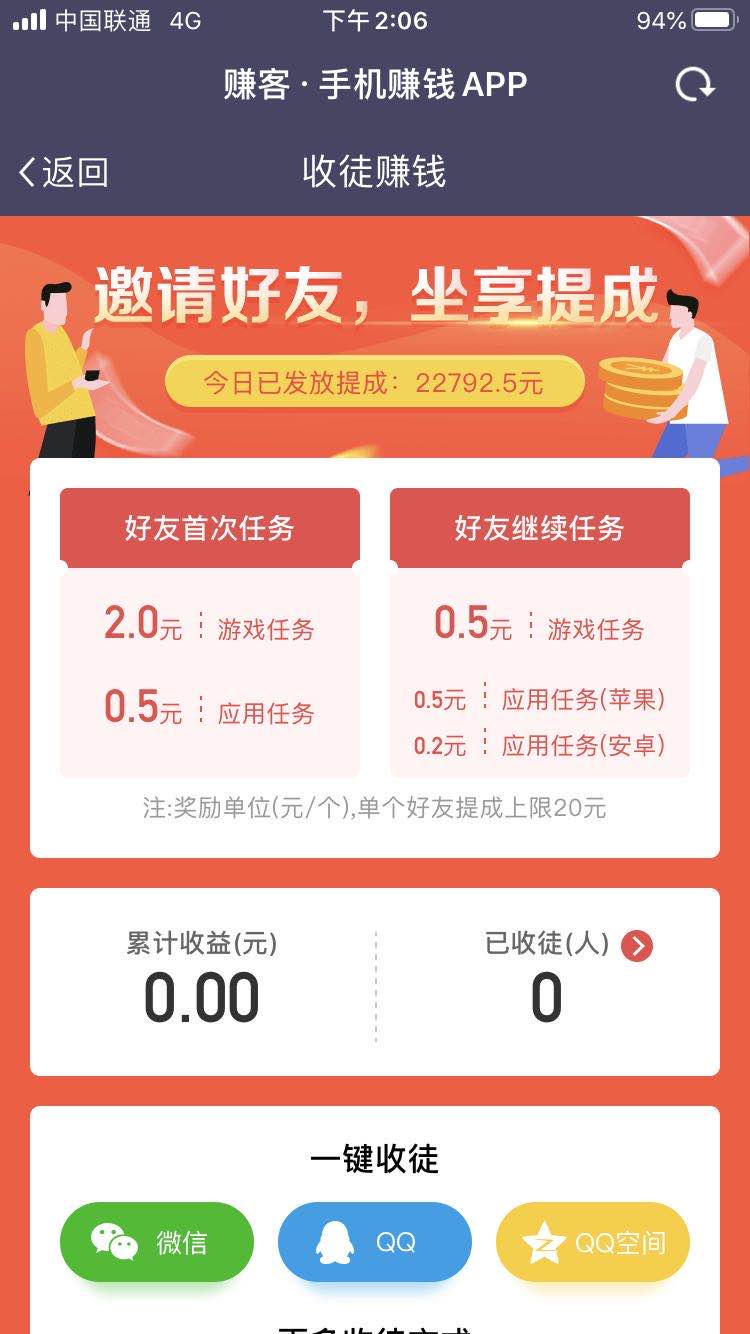 除了试玩应用,还可以通过收徒来赚取现金奖励。